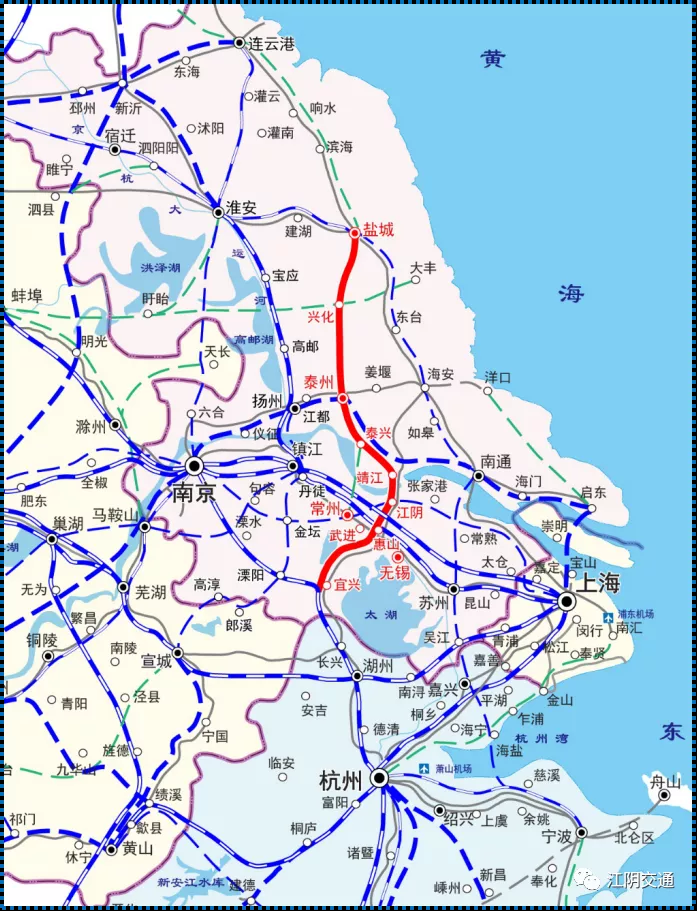 ▲新建盐泰锡常宜铁路线路走向示意图丨 图源:江阴交通