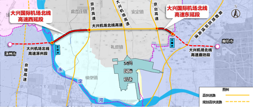最新动态:7 月 15 日,大兴国际机场北线高速公路西延及东延工程项目建议书(代可行性研究报告)获北京市发改委批复,同意实施。