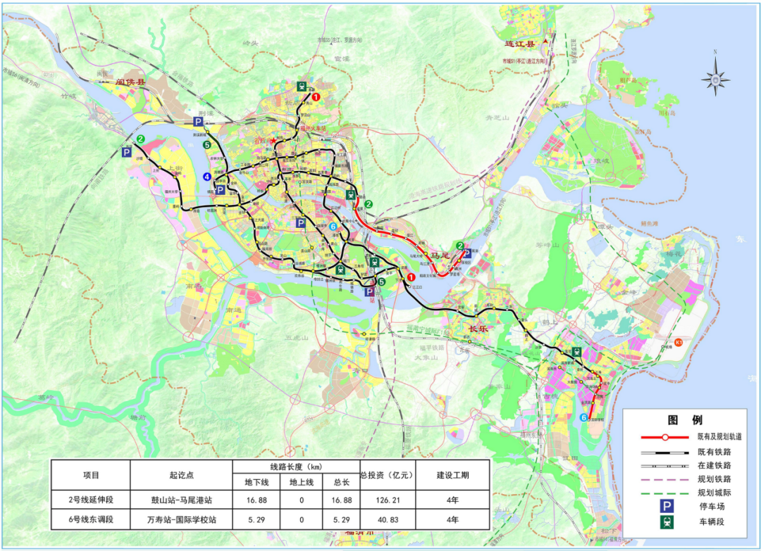 最新动态:7 月 2 日,国家发改委批复了调整福州市城市轨道交通第二期建设规划方案。主要调整的项目为:2 号线东延线、6 号线东延线。